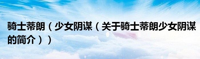 本文關于騎士蒂朗 少女陰謀的簡介就講解完畢,希望對大家有所幫助。