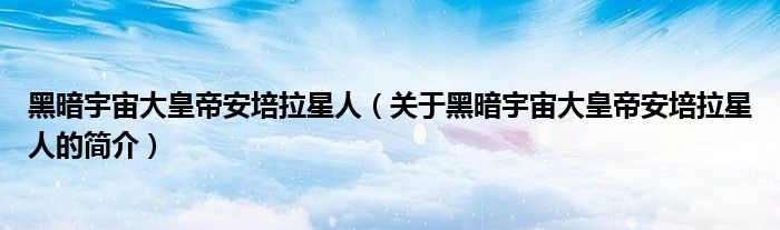 本文關于黑暗宇宙大皇帝安培拉星人的簡介就講解完畢,希望對大家有所幫助。