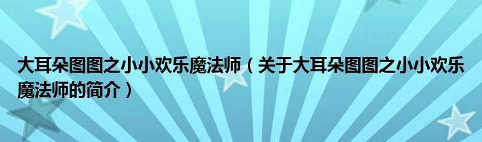 本文關于大耳朵圖圖之小小歡樂魔法師的簡介就講解完畢,希望對大家有所幫助。