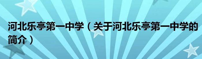 本文關于河北樂亭第一中學的簡介就講解完畢,希望對大家有所幫助。