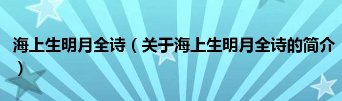 本文關于海上生明月全詩的簡介就講解完畢,希望對大家有所幫助。