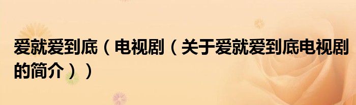 本文關于愛就愛到底 電視劇的簡介就講解完畢,希望對大家有所幫助。