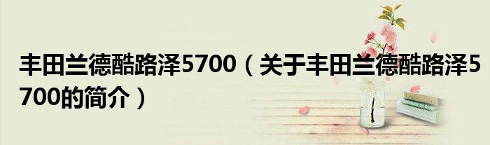 本文關(guān)于豐田蘭德酷路澤5700的簡(jiǎn)介就講解完畢,希望對(duì)大家有所幫助。
