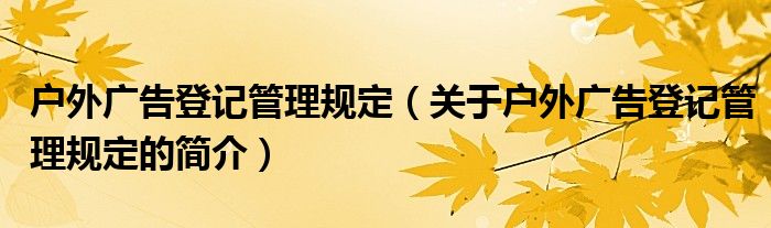 本文關于戶外廣告登記管理規定的簡介就講解完畢,希望對大家有所幫助。