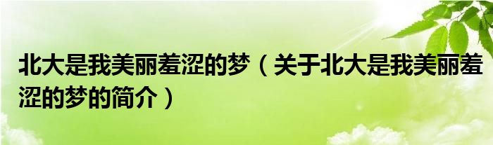 大家好,北大是我美麗羞澀的夢,關(guān)于北大是我美麗羞澀的夢的簡介很多人還不知道,現(xiàn)在讓我們一起來看看吧!