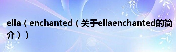 大家好,ella enchanted,關于ella enchanted的簡介很多人還不知道,現在讓我們一起來看看吧!