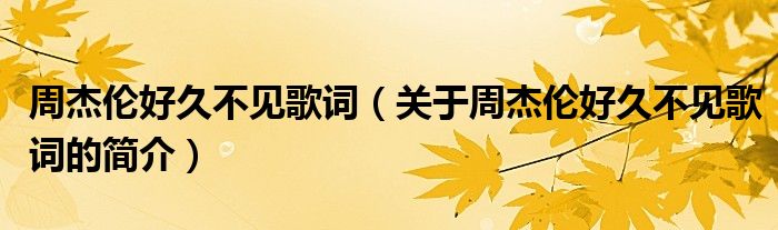本文關(guān)于周杰倫好久不見歌詞的簡(jiǎn)介就講解完畢,希望對(duì)大家有所幫助。