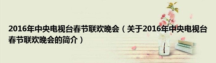 本文關于2016年中央電視臺春節(jié)聯(lián)歡晚會的簡介就講解完畢,希望對大家有所幫助。