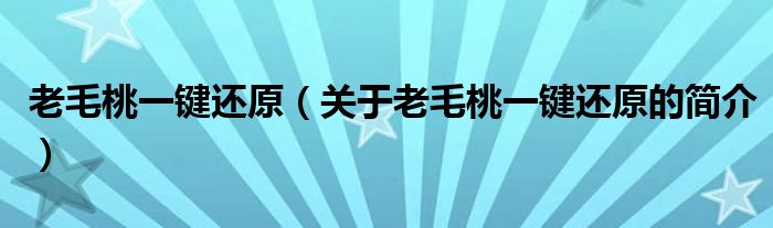 大家好,老毛桃一鍵還原,關(guān)于老毛桃一鍵還原的簡介很多人還不知道,現(xiàn)在讓我們一起來看看吧!