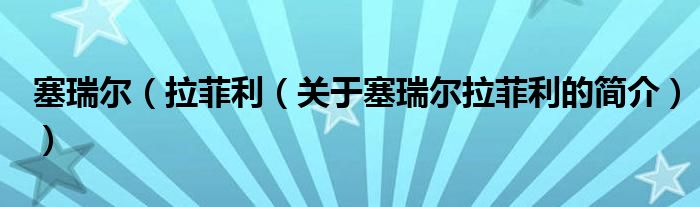 本文關于塞瑞爾 拉菲利的簡介就講解完畢,希望對大家有所幫助。