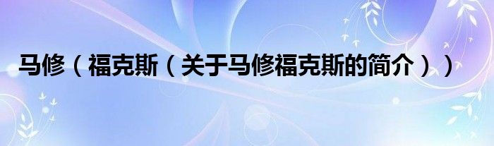 本文關(guān)于馬修 福克斯的簡(jiǎn)介就講解完畢,希望對(duì)大家有所幫助。
