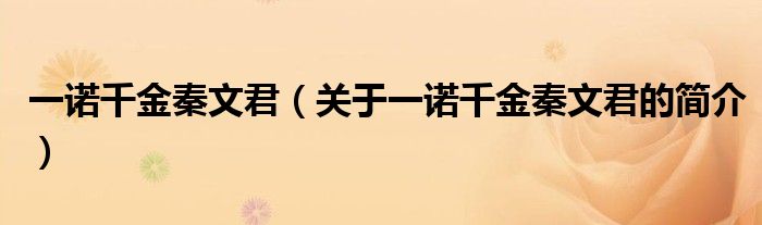 本文關于一諾千金秦文君的簡介就講解完畢,希望對大家有所幫助。