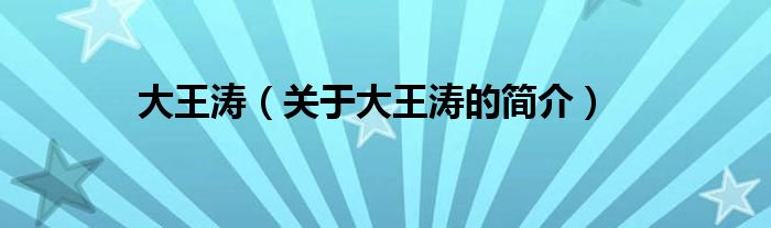 大家好,大王濤,關于大王濤的簡介很多人還不知道,現在讓我們一起來看看吧!