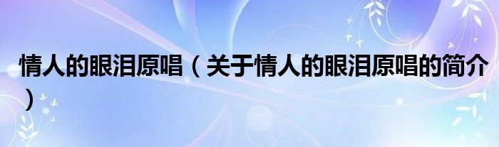 本文關于情人的眼淚原唱的簡介就講解完畢,希望對大家有所幫助。