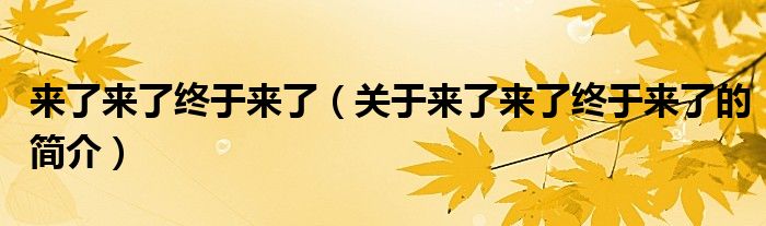 本文關于來了來了終于來了的簡介就講解完畢,希望對大家有所幫助。
