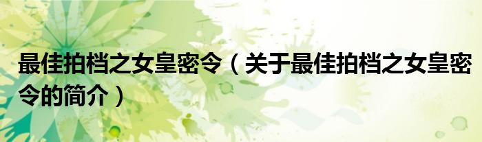 本文關(guān)于最佳拍檔之女皇密令的簡(jiǎn)介就講解完畢,希望對(duì)大家有所幫助。