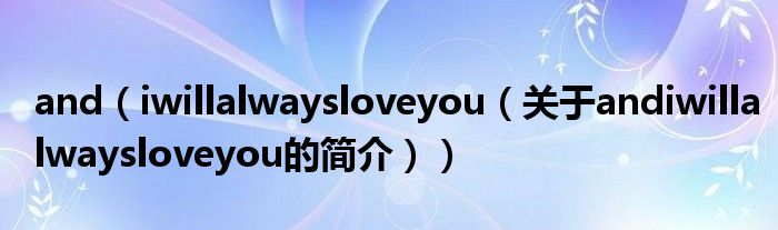 本文關于and i will always love you的簡介就講解完畢,希望對大家有所幫助。