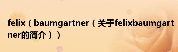 大家好,felix baumgartner,關于felix baumgartner的簡介很多人還不知道,現在讓我們一起來看看吧!