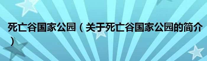 大家好,死亡谷國家公園,關(guān)于死亡谷國家公園的簡介很多人還不知道,現(xiàn)在讓我們一起來看看吧!