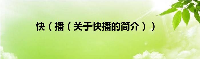 大家好,快 播,關(guān)于快 播的簡(jiǎn)介很多人還不知道,現(xiàn)在讓我們一起來(lái)看看吧!