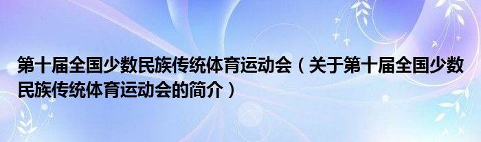 本文關于第十屆全國少數民族傳統體育運動會的簡介就講解完畢,希望對大家有所幫助。