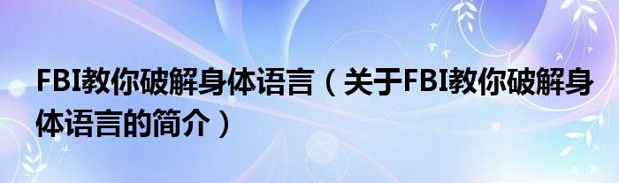 大家好,F(xiàn)BI教你破解身體語言,關(guān)于FBI教你破解身體語言的簡介很多人還不知道,現(xiàn)在讓我們一起來看看吧!