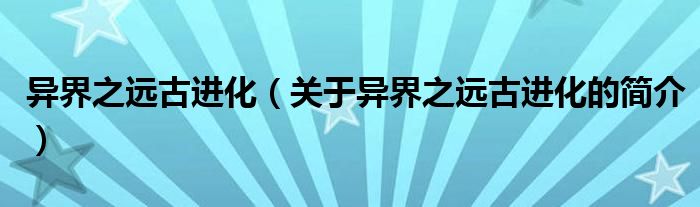 大家好,異界之遠古進化,關(guān)于異界之遠古進化的簡介很多人還不知道,現(xiàn)在讓我們一起來看看吧!