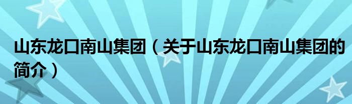 本文關于山東龍口南山集團的簡介就講解完畢,希望對大家有所幫助。