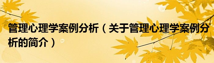 本文關于管理心理學案例分析的簡介就講解完畢,希望對大家有所幫助。