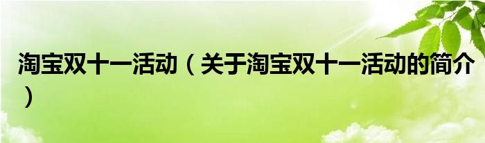 本文關(guān)于淘寶雙十一活動的簡介就講解完畢,希望對大家有所幫助。