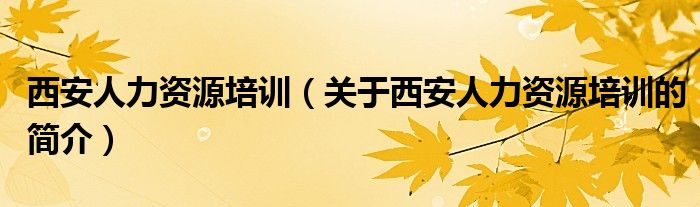 本文關于西安人力資源培訓的簡介就講解完畢,希望對大家有所幫助。