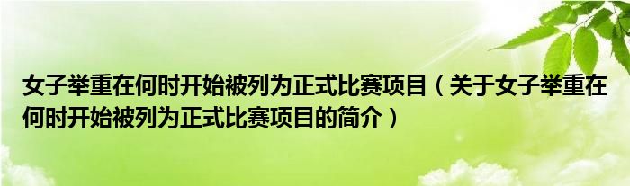 本文關(guān)于女子舉重在何時開始被列為正式比賽項(xiàng)目的簡介就講解完畢,希望對大家有所幫助。
