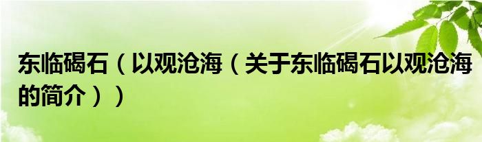 大家好,東臨碣石 以觀滄海,關于東臨碣石 以觀滄海的簡介很多人還不知道,現(xiàn)在讓我們一起來看看吧!