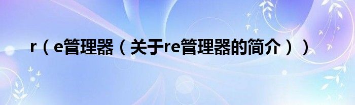 大家好,r e管理器,關于r e管理器的簡介很多人還不知道,現在讓我們一起來看看吧!