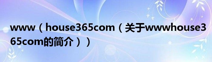 大家好,www house365 com,關(guān)于www house365 com的簡(jiǎn)介很多人還不知道,現(xiàn)在讓我們一起來(lái)看看吧!