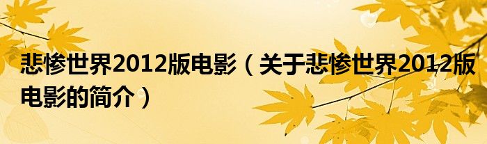 本文關于悲慘世界2012版電影的簡介就講解完畢,希望對大家有所幫助。