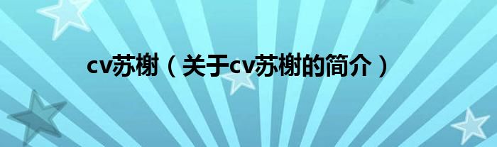 大家好,cv蘇榭,關于cv蘇榭的簡介很多人還不知道,現在讓我們一起來看看吧!
