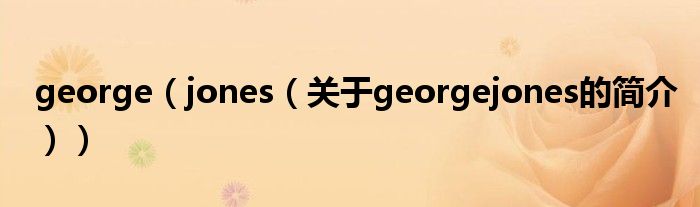 本文關(guān)于george jones的簡介就講解完畢,希望對(duì)大家有所幫助。