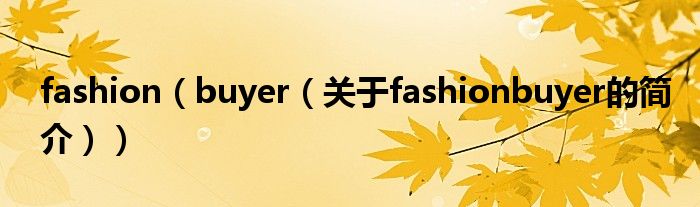 大家好,fashion buyer,關于fashion buyer的簡介很多人還不知道,現在讓我們一起來看看吧!