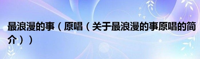 大家好,最浪漫的事 原唱,關于最浪漫的事 原唱的簡介很多人還不知道,現在讓我們一起來看看吧!