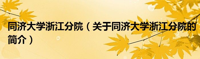 本文關于同濟大學浙江分院的簡介就講解完畢,希望對大家有所幫助。