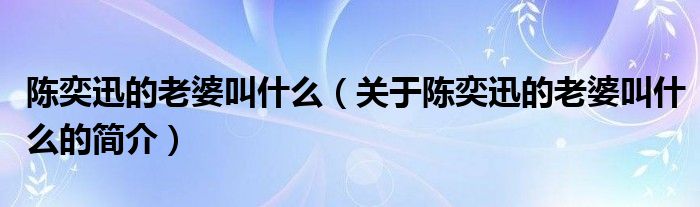 本文關于陳奕迅的老婆叫什么的簡介就講解完畢,希望對大家有所幫助。