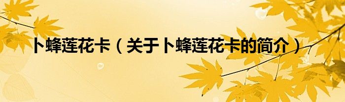 大家好,卜蜂蓮花卡,關于卜蜂蓮花卡的簡介很多人還不知道,現在讓我們一起來看看吧!