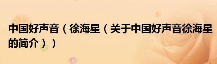 大家好,中國好聲音 徐海星,關于中國好聲音 徐海星的簡介很多人還不知道,現在讓我們一起來看看吧!