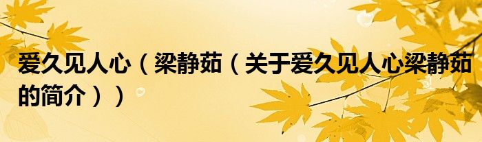 本文關于愛久見人心 梁靜茹的簡介就講解完畢,希望對大家有所幫助。