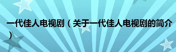 大家好,一代佳人電視劇,關于一代佳人電視劇的簡介很多人還不知道,現在讓我們一起來看看吧!