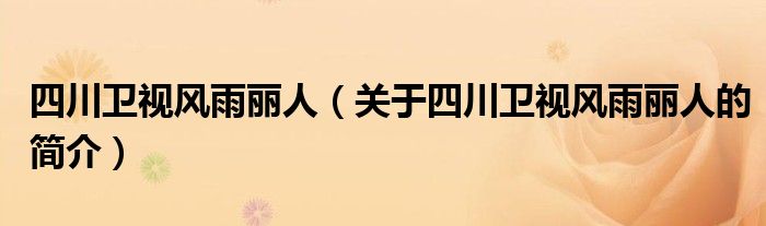 大家好,四川衛視風雨麗人,關于四川衛視風雨麗人的簡介很多人還不知道,現在讓我們一起來看看吧!