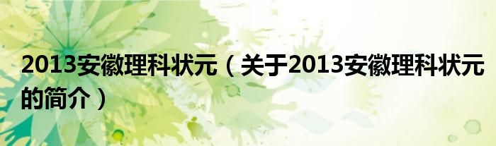 本文關于2013安徽理科狀元的簡介就講解完畢,希望對大家有所幫助。