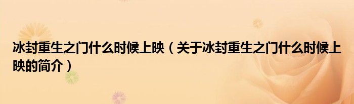 本文關于冰封重生之門什么時候上映的簡介就講解完畢,希望對大家有所幫助。