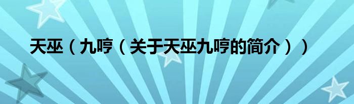 本文關于天巫 九哼的簡介就講解完畢,希望對大家有所幫助。